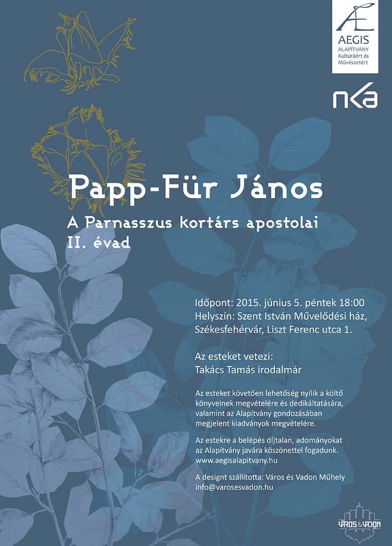 Az Aegis Kultúráért és Művészetért Alapítvány programja a „Parnasszus kortárs apostolai” című sorozat a második évadját zárja le az egykori koronázó városban. A pénteken este 18.00 órakor kezdődő kulturális programon Takács Tamás irodalomtanár vendége Papp-Für János költő lesz. Az estre a belépés ingyenes, az alapítványt támogatójegyek vásárlásával segíthetik. Az eseménynek a Szent István Művelődési Ház, Szent László terem ad otthont.