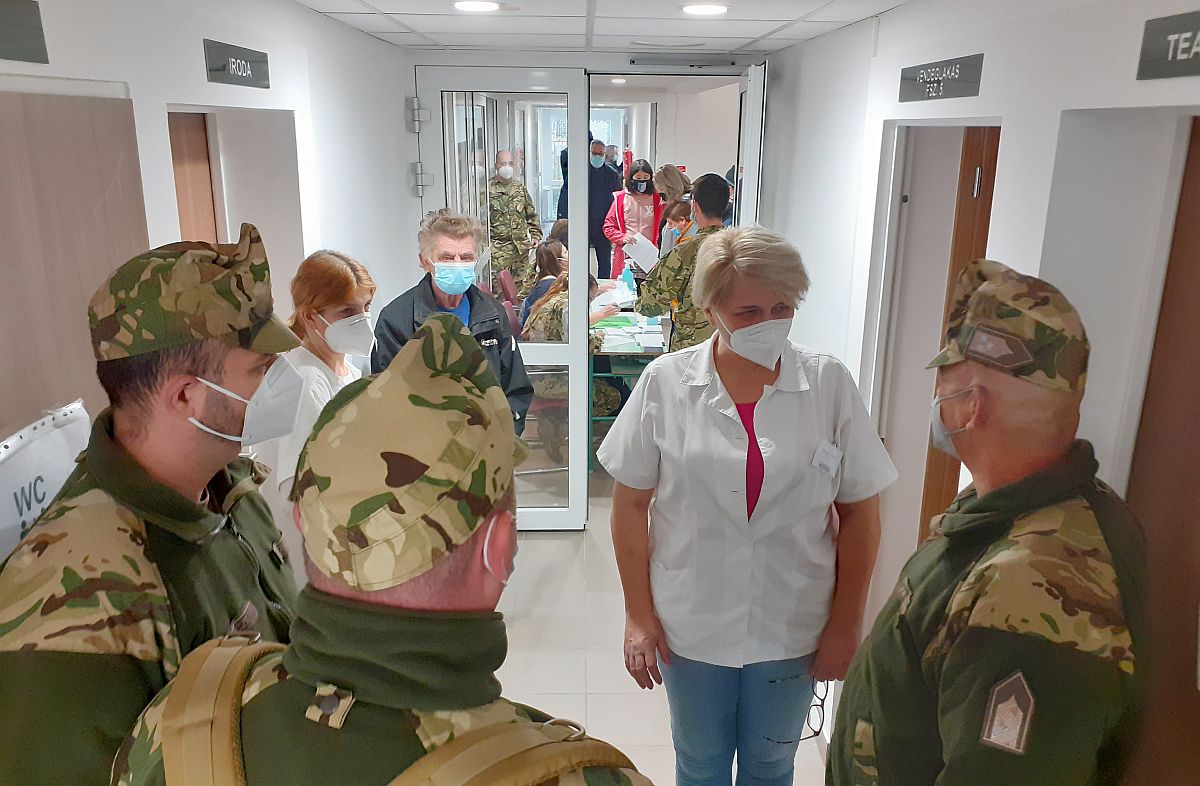 Az oltási akcióhéten Vokla János ezredes, az alakulat parancsnoka, valamint Csizmadia Lajos főtörzszászlós tett látogatást a kórház nővérszállóján kialakított oltóponton, ahol Monyoródi Gábor zászlós, a kórházi katonai állomány kijelölt, rangidős parancsnoka fogadta őket és tájékoztatta az aktuális feladatokról.