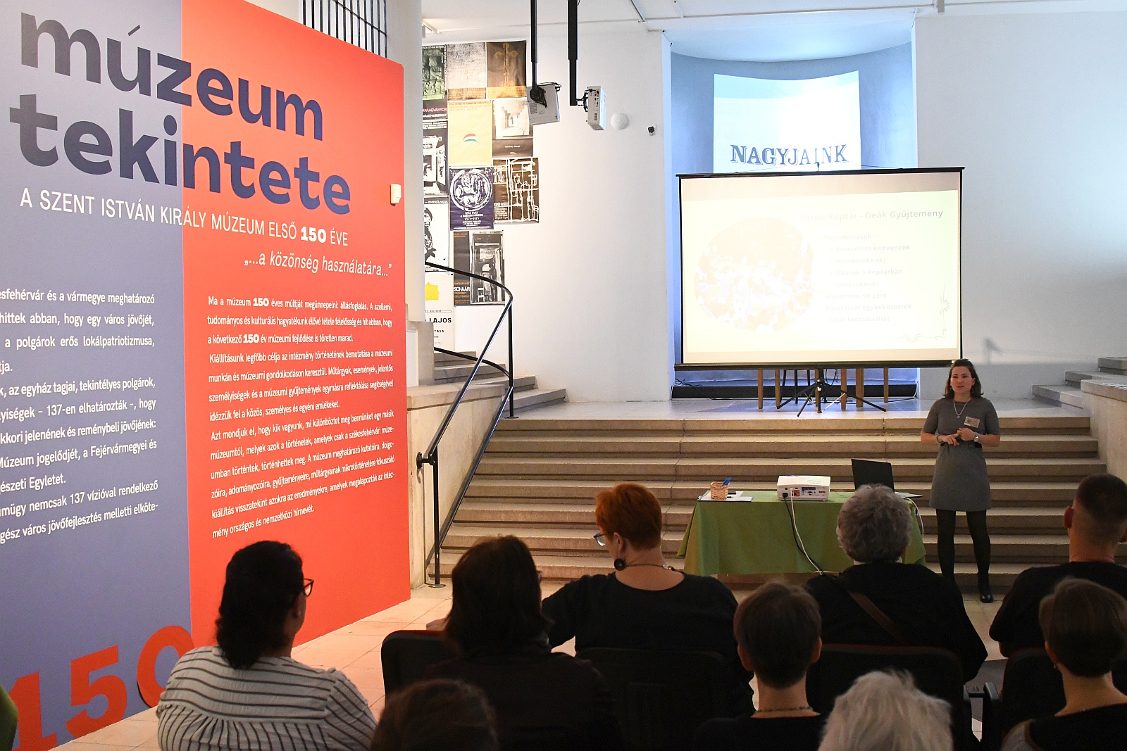 A börze és a beszélgetés végeztével Izinger Katalin invitálta kurátori tárlatvezetésre a résztvevőket az „Egy múzeum tekintete – A Szent István Király Múzeum első 150 éve” című kiállításban.