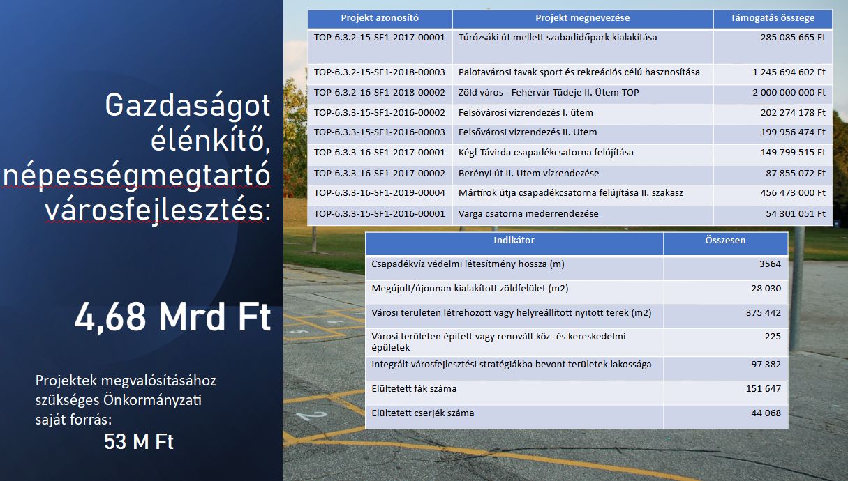 A jövő terveiről szólva a polgármester elmondta, hogy a TOP+ 2021-2027 időszakra jelenleg 13 milliárd 578 millió forintos támogatási igényt nyújtott be a város. Ezt a Szent István tér felújítása mellett a Fehérvár Tüdeje Program folytatására, intézményfelújításokra, társadalmi programokra, okoshálózati rendszerek, közlekedésszervezési okosmegoldások, illetve a Bakony utcai átkötés megvalósítására és az Úrhidai út felújítására szeretne fordítani az önkormányzat. „A pályázatok, fejlesztések előkészítése folyamatosan zajlik tervezéssel, előkészítéssel, viszont egyelőre az európai uniós források nem érkeztek meg. Úgy gondolom, hogy ezek Fehérvárnak járnak, és bízom benne, hogy hamarosan megérkeznek.” Reményét fejezte ki, hogy ebben az évben a kiírásokból egyre több megjelenik majd, és a pályázatokat el tudják indítani, hogy minél hamarabb megvalósuljanak a tervezett fejlesztések.