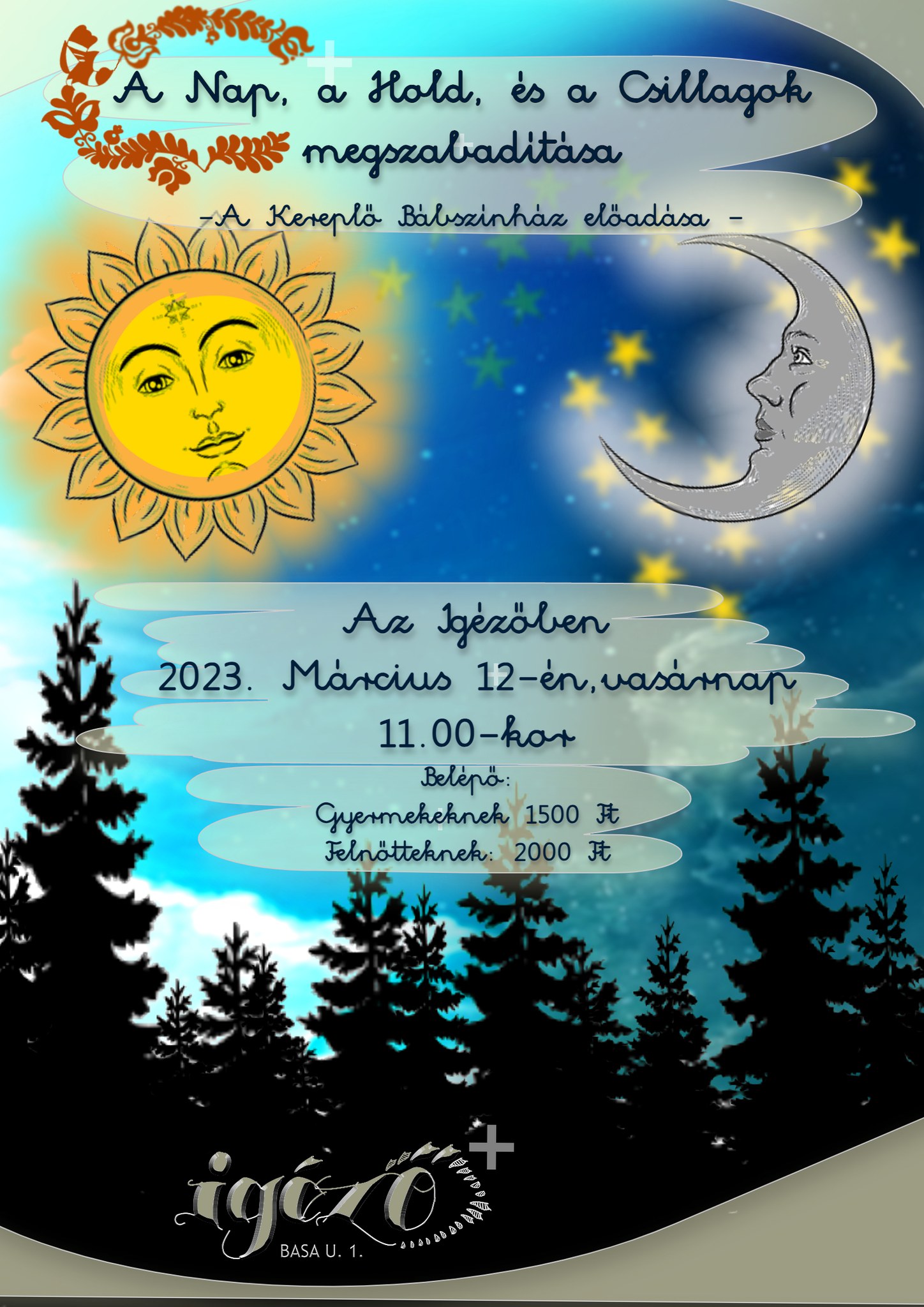 A Nap a Hold és a Csillagok megszabadítása című előadásra várják a kicsiket és a nagyokat vasárnap 11 órakor. A Kereplő Bábszínház interaktív játéka, népmesei alapokból készült előadás. A gyerekközönség aktív részvételével találja meg a három bojtárfiú a három elrabolt szépséges királykisasszonyt. Népi játékok, próbatételek segítik a három fiút, hogy le tudják győzni a félelmetes rettenetes sárkányokat. Az előadás végén mindenki kipróbálhatja a teknőhúzást, a békaugratást, a kolompverést és a többi ritkán látott, elfeledett népi játékot.