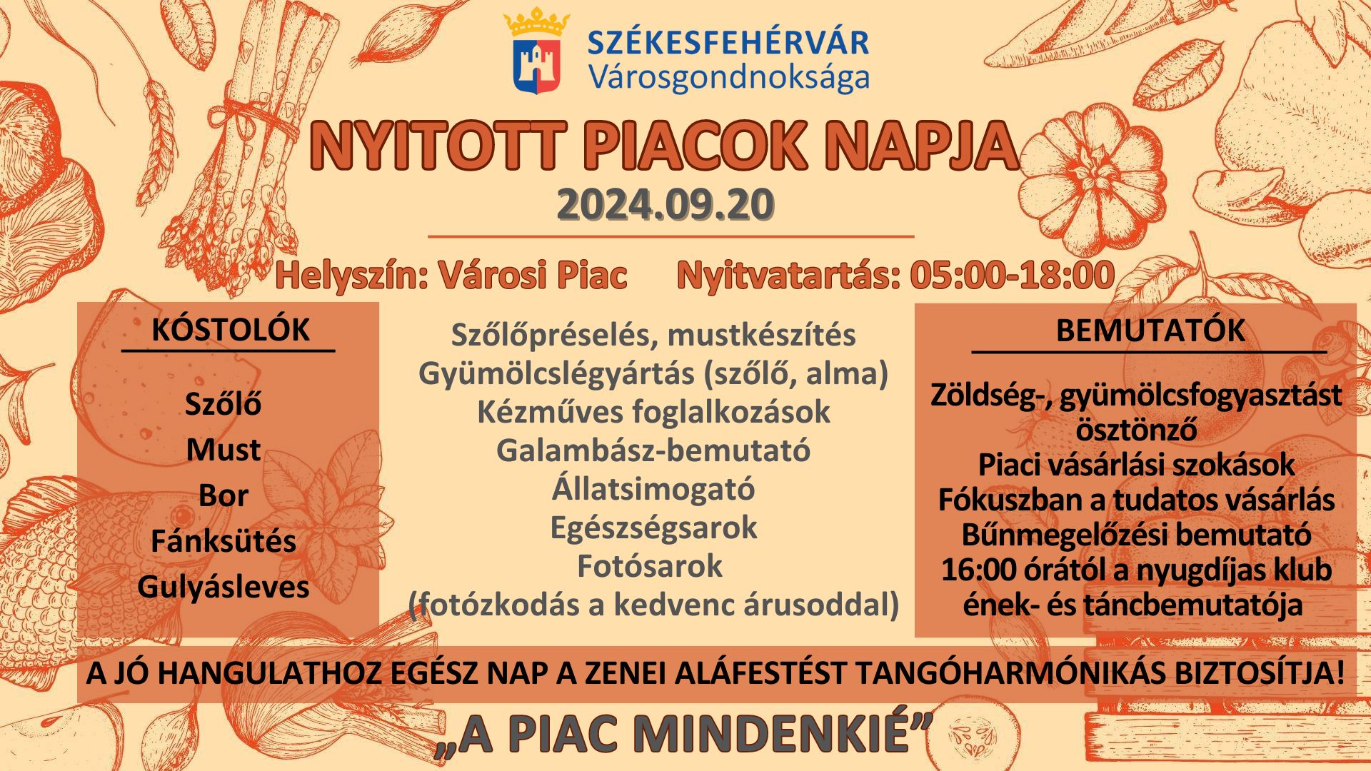 Szeptember 20-án, pénteken a "szőlő és a piac mindenkié" mottóval, egész napos programokkal várják a vásárlókat reggel 5 órától este 18 óráig.