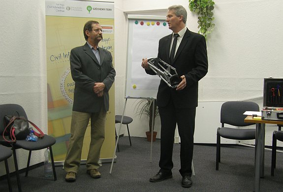 Mechanikus pet palack prést adományozott a Gaja Környezetvédő Egyesület a Fehérvári Civil Központnak 2013. március 22-én. Gárdonyi László, az egyesület munkatársa adta át a szerkezetet Borján Péternek, a Fehérvári Civil Központ Nonprofit Kft. ügyvezetőjének.