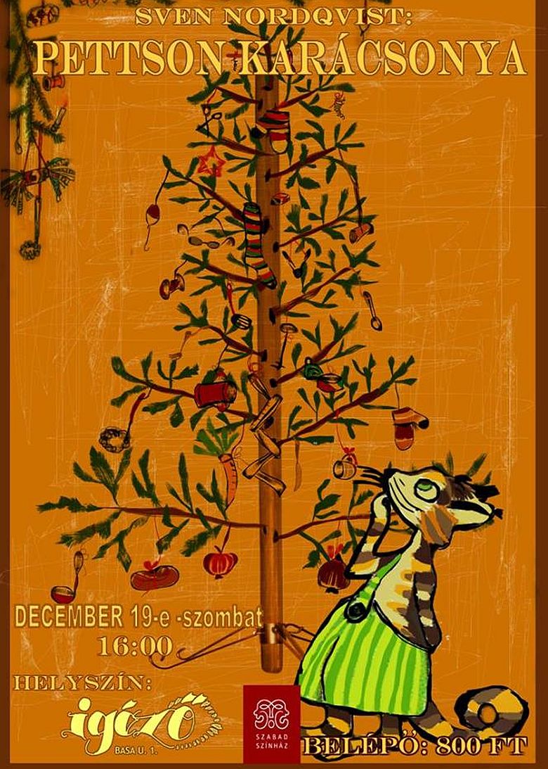 Végre megenyhült egy kicsit az idő! Az öreg Pettson már napok óta el szeretett volna elmenni vásárolni, de eddig olyan hideg volt, hogy még az orrát sem akaródzott kidugni a házból. Most pedig itt állt egy nappal szenteste előtt, és szinte semmi ennivalója nem akadt otthon. Ez volt az utolsó alkalma, hogy bevásároljon, nem is beszélve arról, hogy még ki kellett vágnia a fenyőfát, meg kellett sütnie a mézest, és mindent szépen el kellett rendeznie az ünnepre. Findusz előkereste a karácsonyfatalpat, és az orrát az ajtónak dörgölve alig várta, hogy végre elinduljanak! Hogy később mi történt, azt megtudhatják azok, akik december 19-én 16.00-kor ellátogatnak az Igézőbe.