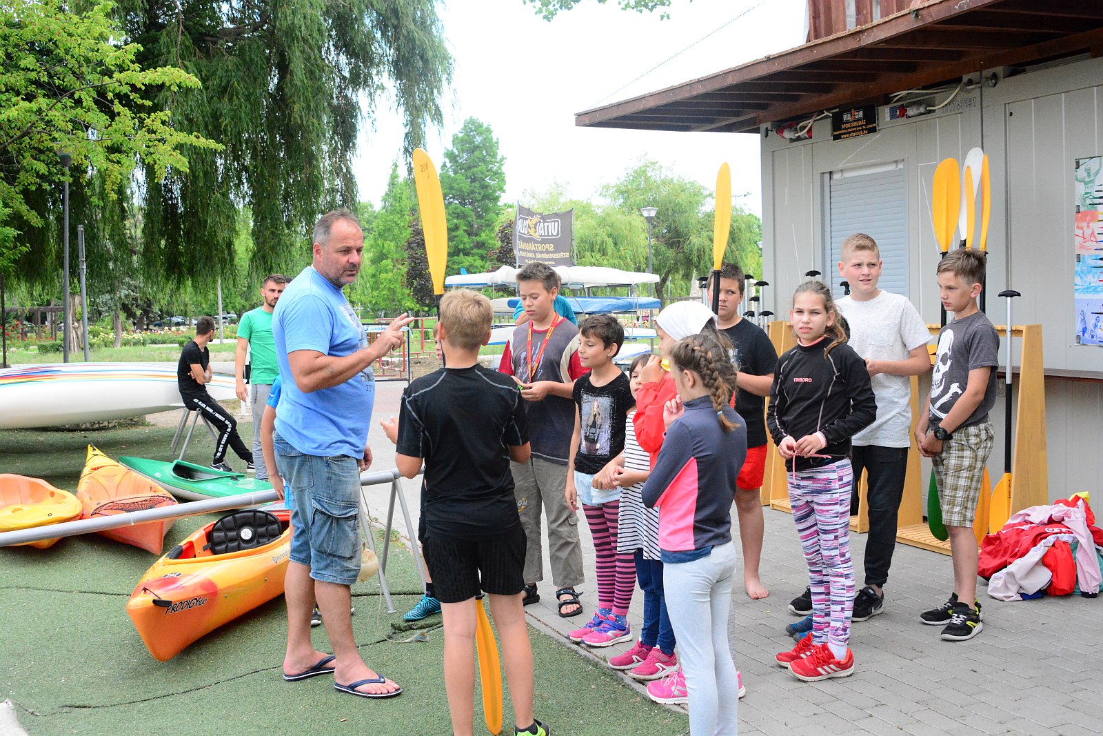 Az idén először szervezünk kifejezetten vízi sport tábort, ahol ha a gyerekek megunják a kajakozást, kenuzást akkor tervezzük játékszerűen megmutatni a vitorlázás alapjait is a gyerekeknek, ha ezt is megunják, átmegyünk a Koronás Parkba.