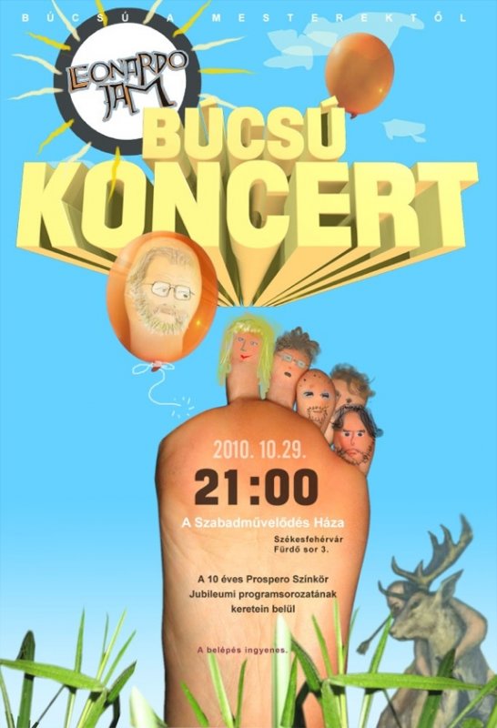 „Búcsú a mesterektől” címmel a 10 éves Prospero Színkör jubileumi programsorozatának keretein belül kerül sor október 29-én a Leonardo Jam koncertjére. Pinke Miklóstól búcsúzik a zenekar a koncerttel, amelyre 21 órától kerül sor a Szabadművelődés Házában, a belépés ingyenes. A Leonardo Jam zenekar története jó pár évre nyúlik vissza. Az együttes stílusában uralkodó lett Fehérváron, aminek az oka az is lehet, hogy csak ők játszanak „Balkáni- lakodalmas- jazzrockot” városunkban.