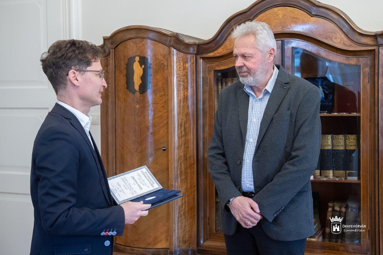 Székesfehérvár polgármestere Cser-Palkovics András a Városházán mondott köszönetet azért a több mint 18 és fél évnyi munkáért, amit a városért végzett Zákányi Tamás.
