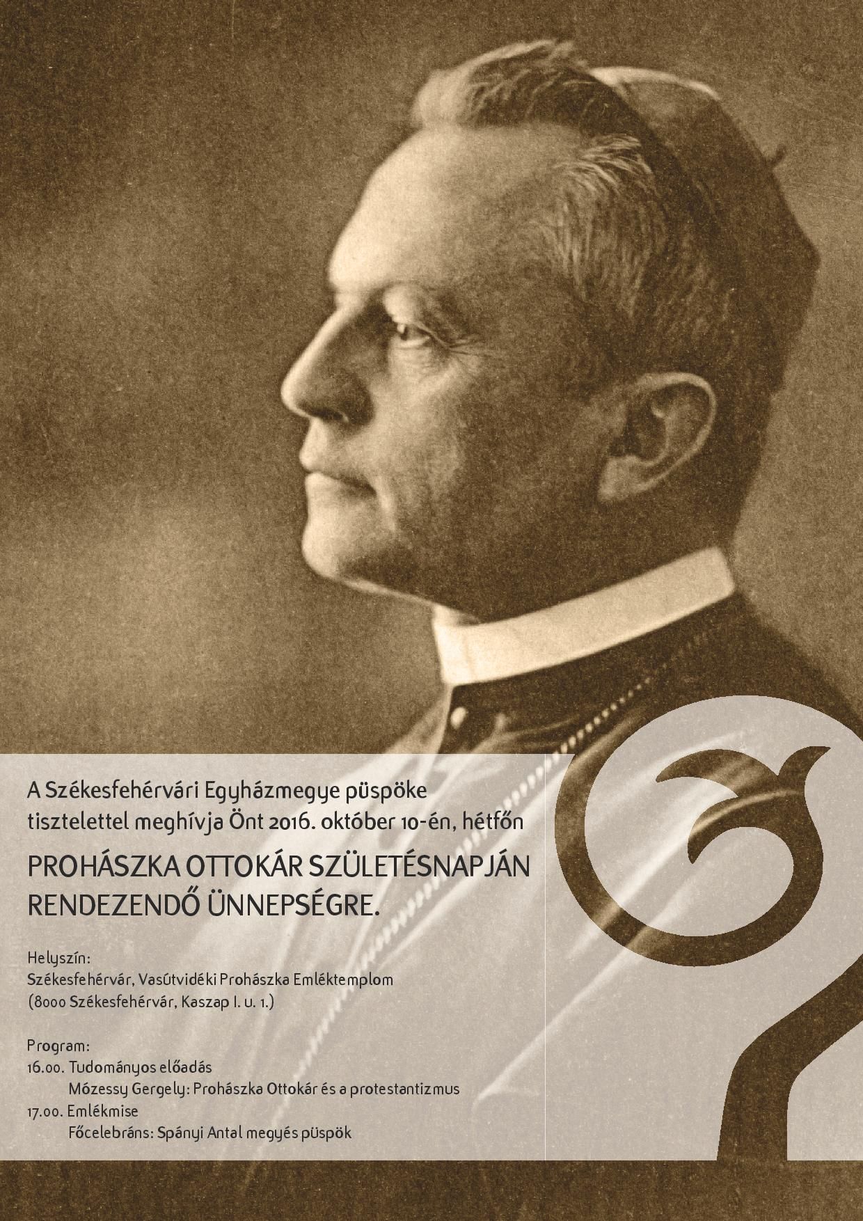 Október 10-én, hétfőn 16 órától a Vasútvidéki Prohászka templomban emlékeznek meg hagyományosan Prohászka Ottokár püspökről Székesfehérváron. Születésének 158. évfordulóján az egyházmegye tudományos előadással, püspöki szentmisével és közös imádsággal tiszteleg a nagy püspök előtt.