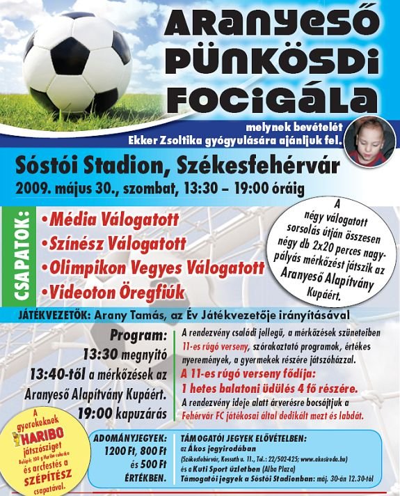 Pünkösdi focigála szombaton Ekker Zsoltika gyógyulásáért