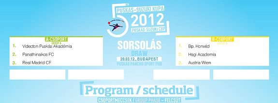 Idén húsvétkor ötödik alkalommal rendezik meg hat csapat, köztük a Real Madrid részvételével a Puskás Suzuki Kupa U17-es labdarúgótornát Felcsúton. A sorsolás alapján az április 6 és 9 között a házigazda Puskás Akadémia a 2008-ban győztes Real Madriddal és a görög Panathinaikosszal került azonos csoportba. Nem véletlen , hogy ilyen nagy nevű csapatok érkeznek városunkba, hiszen Puskás Ferenc legendás labdarúgónk játékosként a Realban, edzőként a görögöknél ért el hatalmas sikereket.
