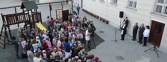 Az ünnepélyes átadáson köszöntőt mondott Róth Péter alpolgármester. Hangsúlyozta: „A fejlesztés egy sokéves összefogás eredménye, hiszen az önkormányzat és az egyházmegye közös céljai között szerepelt az iskola korszerűbbé alakítása.” Spányi Antal megyéspüspök megáldotta a játszóteret, majd kiemelte: „A gyerekek számára elengedhetetlenül fontos a játék, az örömteli mozgás. Örülök, hogy átadhattuk a játszóteret nekik, és köszönjük, hogy a várossal összefogva közösen tudtuk ezt az értéket megteremteni !" A gyerekek az ünnepség után boldogan vették birtokba az új játszóteret és felszabadultan szórakoztak hosszú perceken keresztül.