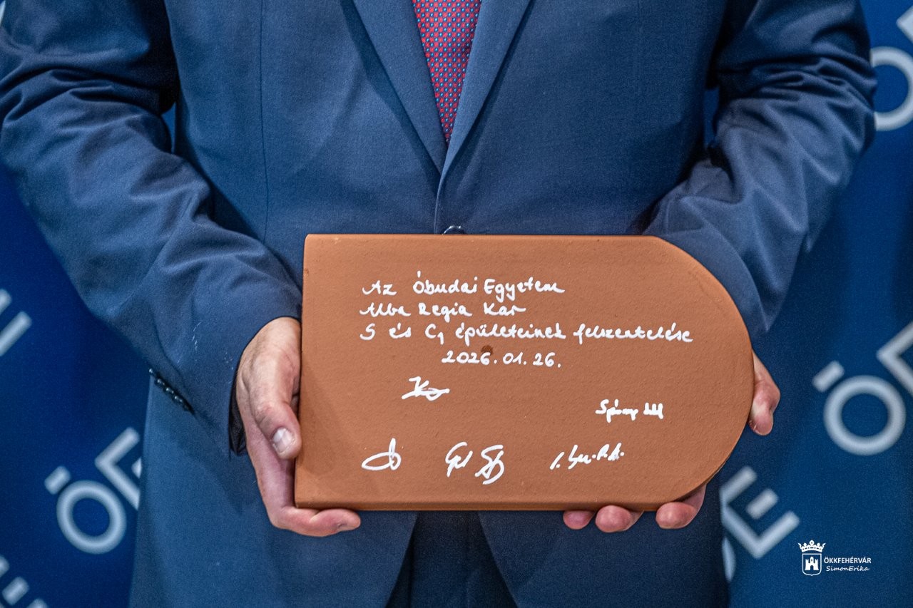 Dr. Cser-Palkovics András polgármester, a Rudolf Kalman Óbudai Egyetemért Alapítvány elnöke hangsúlyozta, a mai esemény egy hosszú együttműködés fontos pillanata. Az Óbudai Egyetem évekkel ezelőtt hitet tett amellett, hogy Székesfehérváron képzeli el a jövőjének egy részét. 2026 elejére érkeztünk el ahhoz a pillanathoz, hogy az épületek átkerültek annak az egyetemnek a tulajdonába, amely fenntartóként évek óta használja azokat oktatási tevékenységre. „Meggyőződésem, hogy egy olyan szereplőnél vannak az épületek, amely hosszú távon gondolkodik Székesfehérvárban és tervez itt fejlesztéseket. Mi azt szeretnénk, hogy az Óbudai Egyetem és Székesfehérvár kapcsolata legyen egyre erősebb és hozzájuttassa a lehetőséghez a fiatalokat, az oktatókat, a kutatókat egyaránt!” – hangsúlyozta városunk polgármestere.