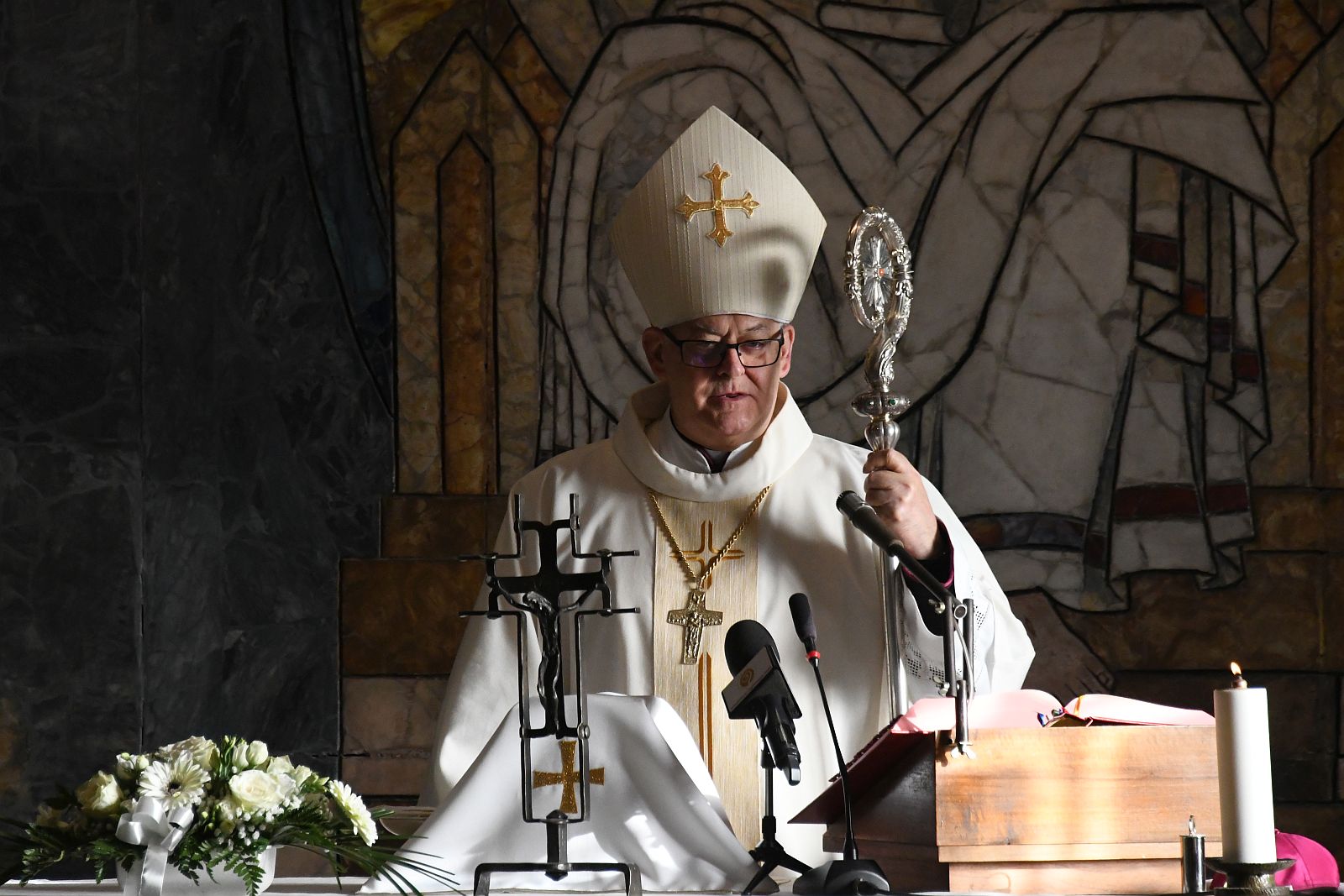A püspök szentbeszédében kiemelte, hogy Krisztus királya lesz annak, aki szívébe fogadja, akinek az életét nem világi ábrándok, nem világi vágyak vezérlik. "Fontos, hogy Krisztust követve figyeljünk az ő tanítására. A krisztusi evangéliumot mindenki megértheti. A kicsi gyermek, az idős felnőtt, az, aki kevesebb iskolát végzett, és az is, aki a legmagasabb tudományos szintekre jutott, mindenki egyformán megértheti Krisztus tanítását. Nekünk erre kell figyelnünk, és arra kell törekednünk, hogy ha Krisztust akarjuk királyunknak, akkor fogadjuk be az Ő szavait. Valóban tetteinknek, cselekedeteinknek legyen Ő az ura és mozgatója. Ott lesznek bennünk azok a cselekedetek, amelyeket Krisztus cselekedett, a felebaráti szeretetet, a kedvesség, a türelem, a megbocsátás, az újrakezdés, a hűség, a kitartás, az áldozatvállalás, mind-mind az életünkhöz fog tartozni. Ennek, sokszor úgy érezzük, kevés jelét látjuk. Többször arról hallunk híreket, hogy sokan vannak, akik hűségesek az egyházhoz, vállalják akár a vértanúhalált is. Mégis azt gondolom, hogy a világ lehet, hogy sötétnek látszik, de mégiscsak biztos, hogy Krisztus királyé a végső győzelem, ezért nem szabad egy percre sem meginognunk, nem szabad egy percre sem elkeserednünk."