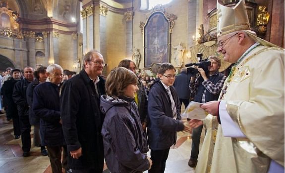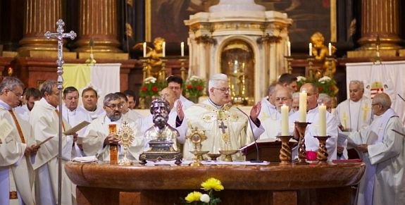 Az első szent család oltalmába ajánlotta a családokat Spányi Antal megyés püspök Szent István, Boldog Gizella és Szent Imre ereklyéi előtt.