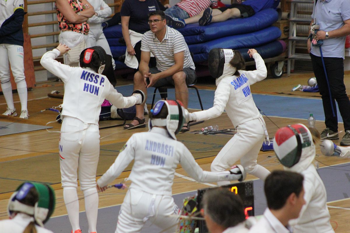 Délután a lányok következtek. Az egyesület mindhárom női versenyzője sikeresen vette a csoportköröket, és jutott Salamon Réka harmadikként, Kiss Emma kilencedikként, Tehrani Léna negyvennegyedikként fordulva táblára. Az egyesület versenyzői kiegyensúlyozott vívással mutatkoztak be ismét, és végzett Tehrani Léna 28., a még gyermek korosztályú Kiss Emma Júlia a 10., és Salamon Réka a döntőben a 6. helyen.