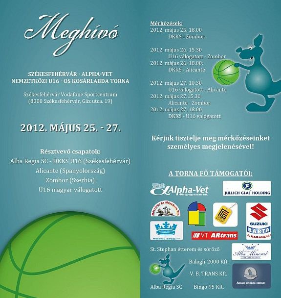 A Bajnokok Városában méltán népszerű kosárlabda folyamatos utánpótlását hivatott biztosítani az Alba Regia SC-vel immár szoros együttműködésben több száz gyermeket képző Dávid Kornél Kosársuli. Minden korosztályban versenyez a DKKS, a 15-16 évesek számára kiváló erőfelmérőnek ígérkezik a május 25-27-én sorra kerülő fehérvári torna, amelyre a spanyol Alicante, a szerbiai Zombor és a magyar U-16-os válogatott kapott meghívót. A Székesfehérvár-Alpha-Vet Nemzetközi Torna egyik ötletgazdája és szervezője, Molnár Tamás elmondta, a kosársuli tavaly részt vett Zomborban egy hasonló megmérettetésen, akkor merült fel, itthon is kellene ilyet rendezni."Szigetvári Zoltán, a fehérvári U-16-os csapat edzője javasolta, hogy vegyük fel a kapcsolatot a spanyolokkal, végül az Alicante korosztályos csapatát hívtuk meg, és velük az együttműködés nem is merül ki ennyiben. Augusztusban a Dávid Kornél Kosársuli ezen korosztálya egyhetes alicantei edzőtáborban vehet részt" - mondta Molnár Tamás.