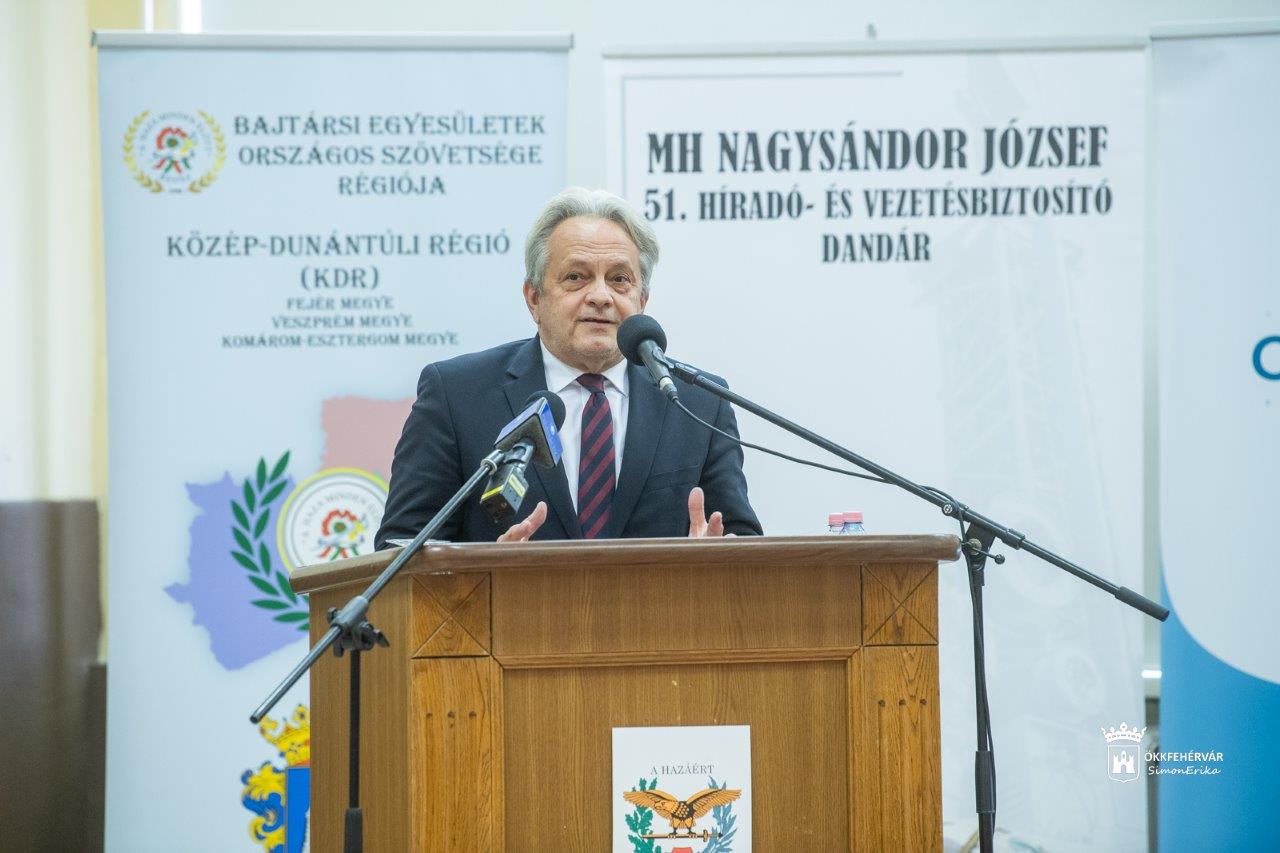 A Bajtársi Egyesületek Országos Szövetsége és a Honvédségi Nyugdíjas Klubok Országos Szövetsége támogatásával megvalósuló székesfehérvári találkozóra érkezőket Vargha Tamás honvédelmi államtitkár, Székesfehérvár országgyűlési képviselője köszöntötte.