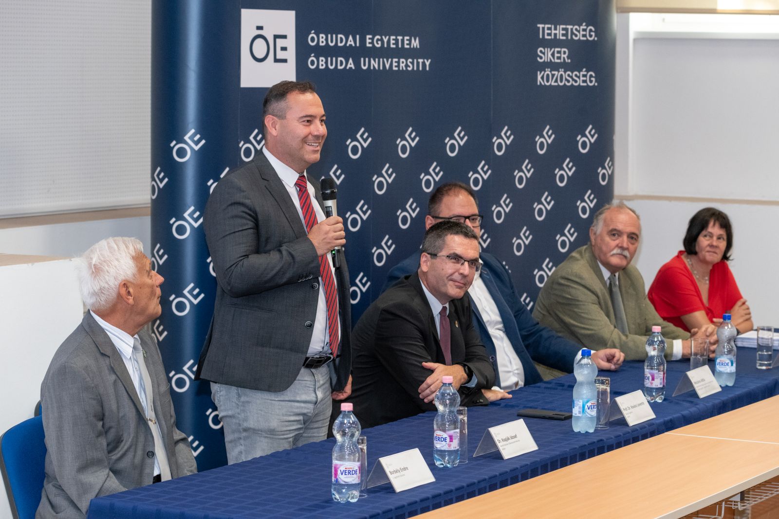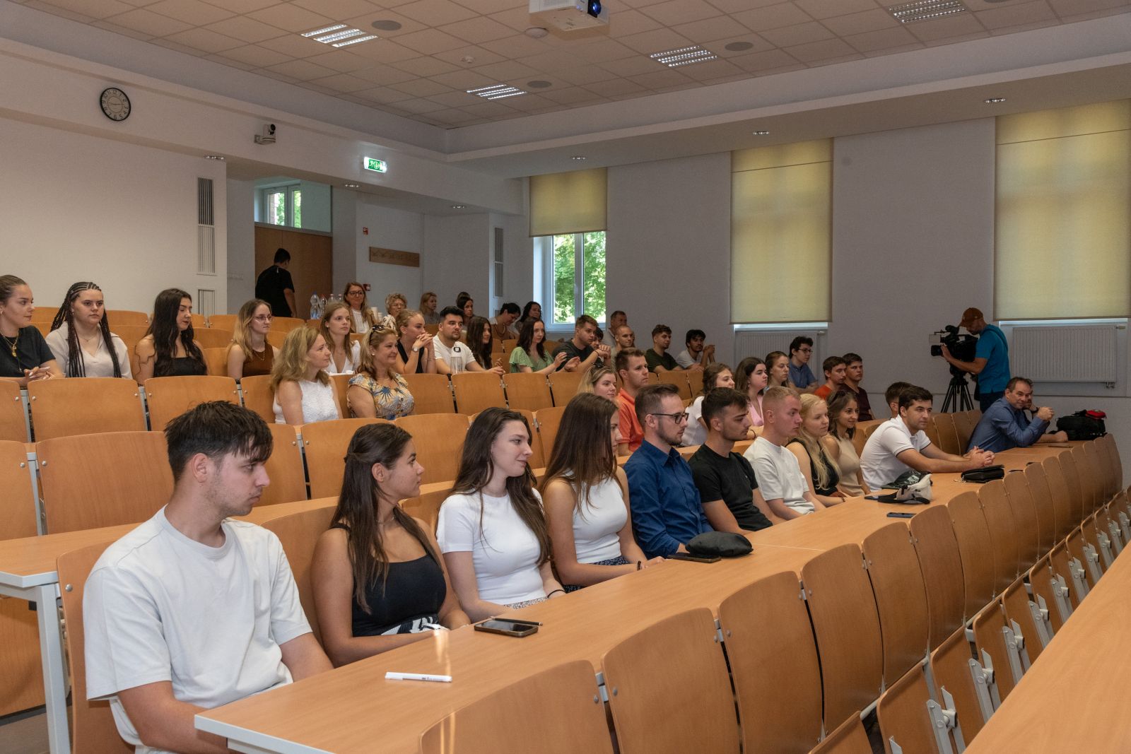 „Önök nagyon jó egyetemet választottak, ahol szeretettel, nagy emberbaráti attitűddel köszöntjük Önöket! Fogjuk az Önök kezét, simogatjuk a lelkét, és kívánunk nagyon szép diákéveket!” – fogalmazott a megnyitón Prof. Dr. Györök György, az ÓE AMK dékánja. Hozzátette, hogy a legtöbb, amit a fiataloknak adhatnak, az maga az egyetemi közösség. Nagyon fontos, hogy a hallgatók minél inkább megismerjék az intézményt és egymást is.