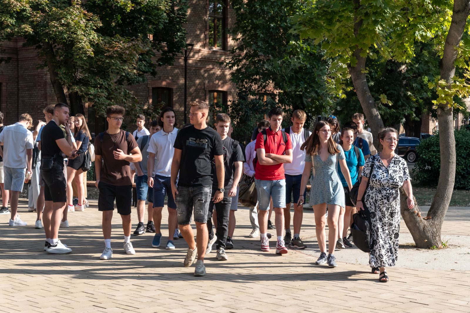 Az Óbudai Egyetem Alba Regia Műszaki Kar udvarán gyülekeztek a „gólyák” hétfőn reggel, a regisztrációs hét megnyitóján.