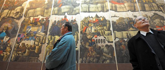 Az esős-borongós idő ellenére szombat reggel annyian akartak részt venni az Aba-Novák sétán, hogy a csoportot két részre kellett bontani. Az első állomáson, a Csók István Képtárban, a tizennégy darab két méter széles és nyolc méter hosszú fatáblákból álló, a magyar-francia kapcsolatok több száz éves történetét bemutató pannókat tekintette meg a csoport. Az idegenvezető kifejtette, Aba-Novákra nagy hatással volt a korabeli olasz festészet, amelynek nyomai, például az ezüst színű háttér alkalmazása, a pannókon is felfedezhető. A monumentális alkotáson a magyar történelem Franciaország szempontjából is meghatározó eseményeit, többek között a Szent Istvánnak koronát küldő Szilveszter pápát, a nándorfehérvári győzelmet, és a Rákóczi-szabadságharcot ábrázolja. A pannók az 1937-es párizsi világkiállítás magyar pavilonját díszítették.