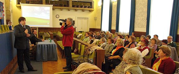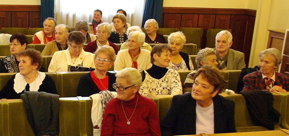 Az Alba Regia Nyugdíjas Egyesület tagjai látogattak el pénteken a Városházára, ahol Csurgai Horváth József, a 2013-as emlékbizottság elnöke tartott számukra előadást a nemrégiben átadott falfeliratokról és Székesfehérvár történelméről. Az emlékbizottság elnöke az előadása elején elmondta, fokozatosan visszakapja régi pompáját a Városháza Nagytanácsterme - az 1938-as állapotot igyekeznek majd visszaállítani - és 2013-ra befejeződik a terem felújítása.