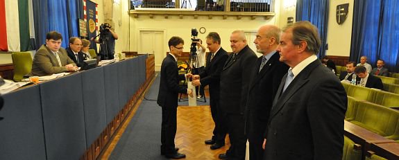 A Közgyűlés elején a város polgármestere dr. Cser-Palkovics András köszöntötte Balsay Istvánt a város korábbi polgármesterét, dr Csizek Tibor rendőrkapitányt, dr. Simon László rendőrfőkapitányt és dr. Berey Attilát volt főállatorvost. Õk Március 15 alkalmával kaptak magas állami kitüntetést.