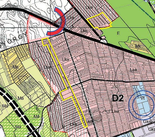 Határozat született a Kőrösi és az Iszkai úton a régóta várt lakóterületté sorolásáról. A testület a Kőrösi út eddig külterületi oldalát és az Iszkai úton a városhoz közel eső részét vonta belterületbe. (A sárga vonallal bekeretezett rész az újonnan kertvárosias lakóterületté minősített terület.)