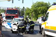 Rendőrautó balesetéhez riasztották a székesfehérvári tűzoltókat csütörtökön délután. Székesfehérváron a Budai út és a Kadocsa utca kereszteződésében a megkülönböztető fény- és hangjelzést használó rendőrautónak ütközött egy Renault nyerges vontató. A Ford Focus járőrautó a kereszteződés túloldalán, a Seregélyesi úton a külső sávban, a rakomány nélküli kamion pedig körülbelül 100 méterrel távolabb állt meg. A rendőrautóban két járőr és egy gyakorló szolgálatát töltő hallgató ült, őket a mentők kórházba szállították. A tűzoltók áramtalanították a Fordot.