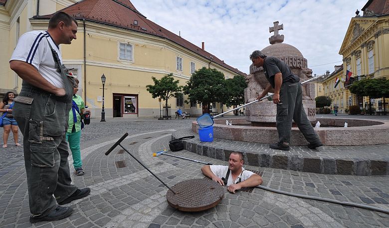 Mint minden városi szökőkút esetében, az Országalmánál is rendszeresen kell takarítani a vízforgató rendszer szűrőit és pótolni az elpárolgott vizet. Az Országalma alatti szivattyúházban is hetente többször tisztítják a Városgondnokság szakemberei a szivattyú szűrőjét. A rendszerben mintegy 3 köbméternyi vizet forgatnak és az uszómedencékben is használatos vegyszerezéssel kezelik a vizet, hogy mindig szép tiszta legyen és minimálisra csökkenjen az esetleges fertőzésveszély.