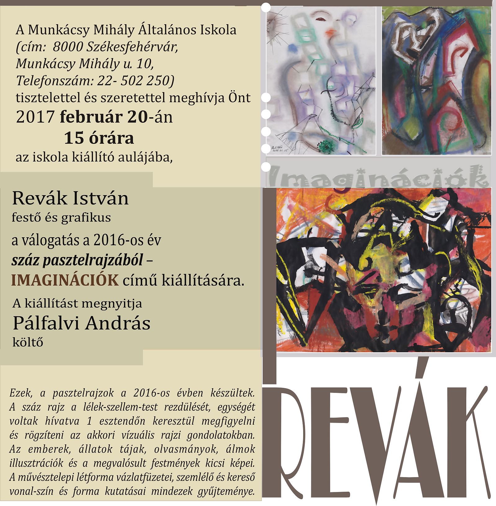 Revák István festő és grafikus pasztelrajzaiból válogat az a kiállítás, ami február 20-án 15 órakor nyílik meg a Munkácsy Mihály Általános Iskola aulájában. Az imaginációk című tárlat száz rajza a lélek-szellem-test rezdüléseit és egységét rögzíti. A kiállítást Pálfalvi András költő nyitja meg.