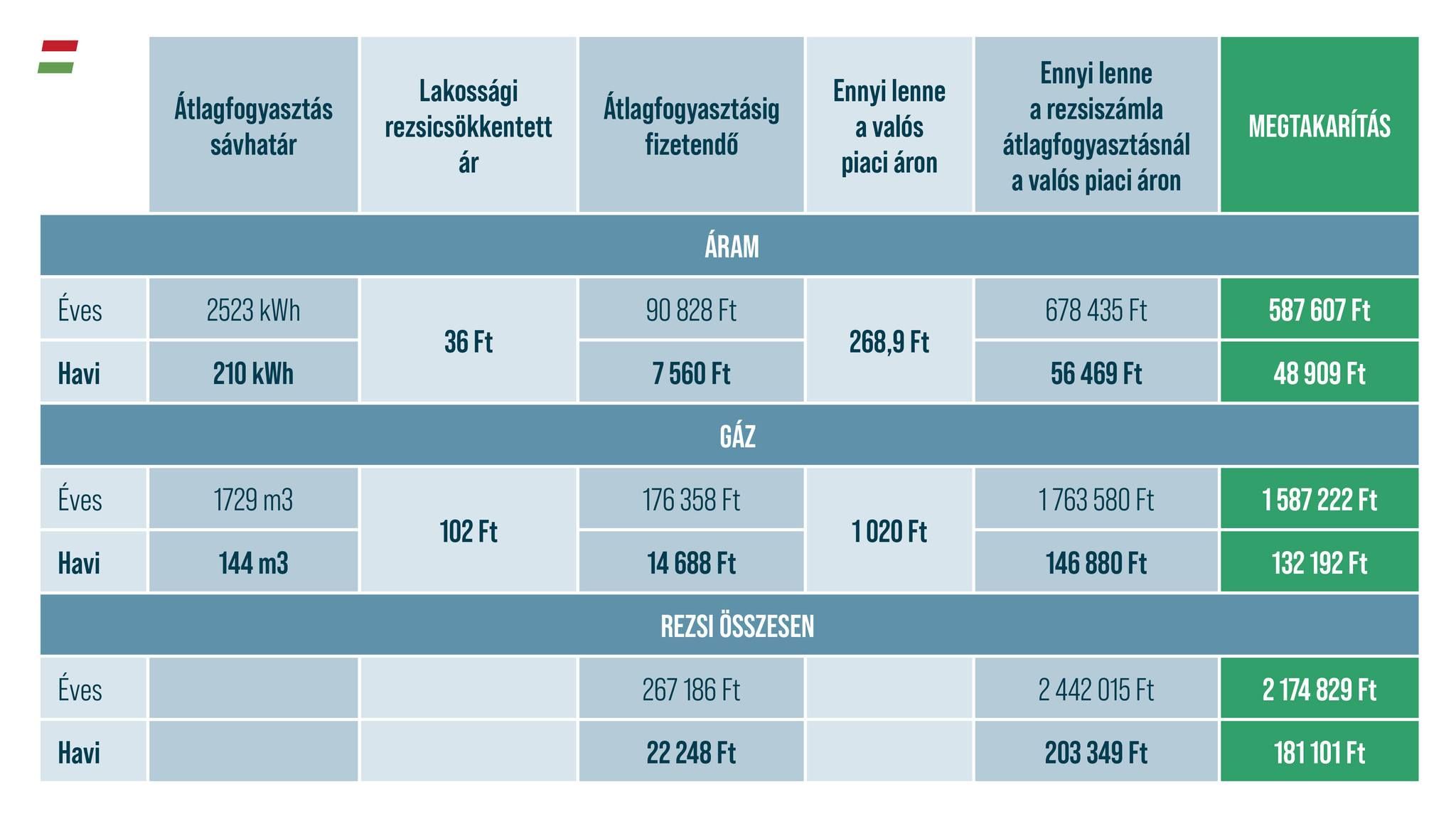 Németh Szilárd közölte: meghatároztak egy limitet, ameddig a gázt és a villanyt mindenki rezsicsökkentett áron kapja, ez a limit a földgáz tekintetében 1729 köbméter/év, vagyis 144 köbméter/hónap, a villamos energiánál pedig 2523 kilowattóra évenként (kWh), ami 210 kWh havonkénti fogyasztásnak felel meg.
