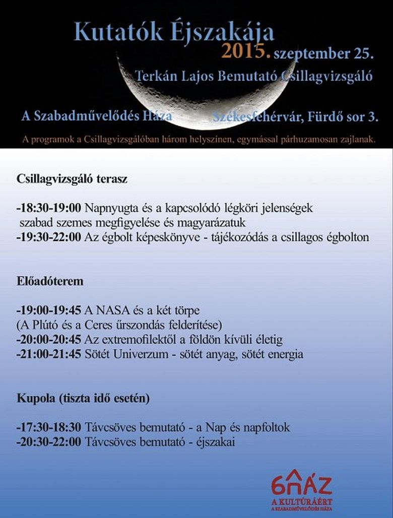 A részletezett előadásokon túl további érdekes bemutatók közül lehet válogatni. A székesfehérvári programok IDE kattintva megtalálhatóak.