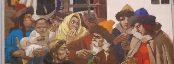 Aba-Novák Vilmos "Magyar-francia történelmi kapcsolatok" (1937) című pannója egykor a Párizsi Világkiállítás magyar pavilonjának ékessége volt. A monumentális festmény ma a Csók István Képtár emeleti kiállítótermének falát díszíti. A kiállításon a Grand Prix-vel jutalmazott Aba-Novák pannó mellett az azzal korban és stílusban összetartozó "római iskolás" művekből adnak válogatást.