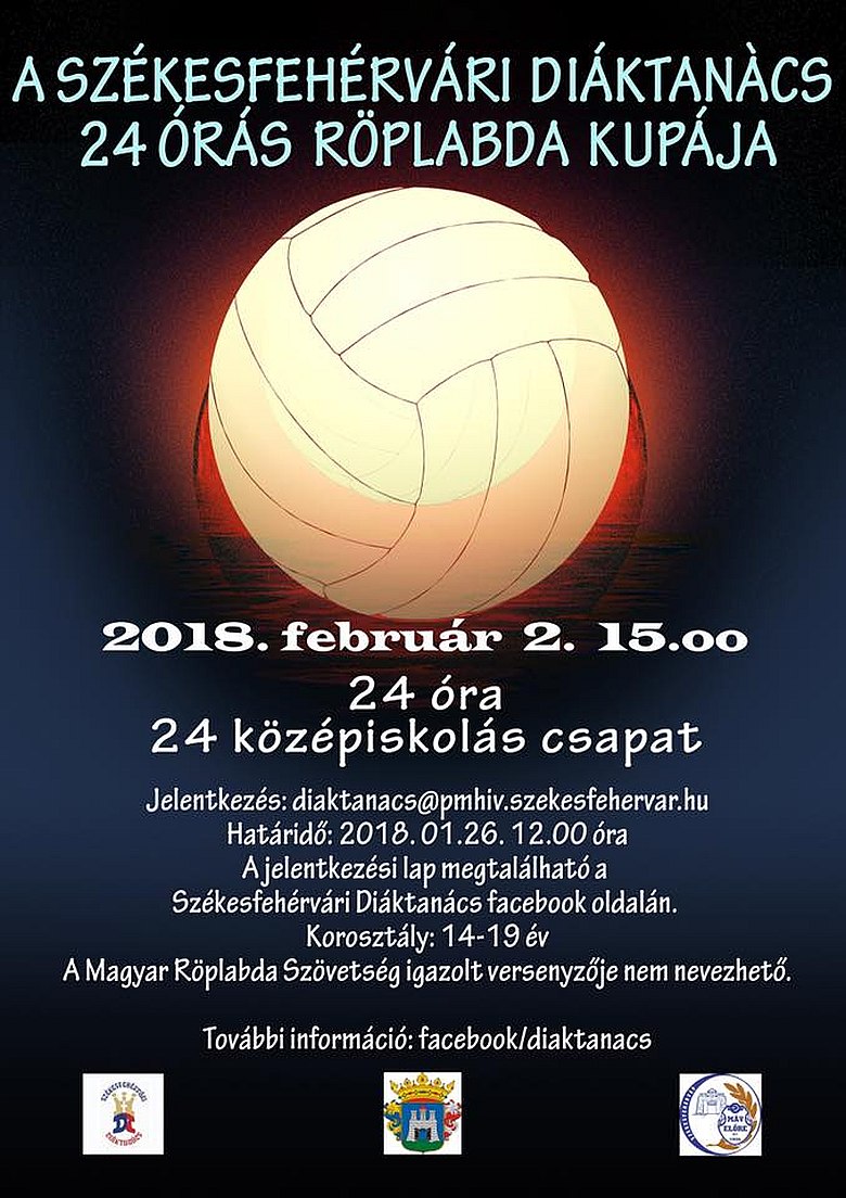 24 órás nonstop közösségépítő röplabdakupára várják középiskolás csapatok és 14 éves kor feletti baráti társaságok jelentkezését. A Székesfehérvári Diáktanács rendezvénye február 2-án, pénteken 15 órakor kezdődik a Székesfehérvári SzC Jáky József Szakgimnáziuma tornatermében.