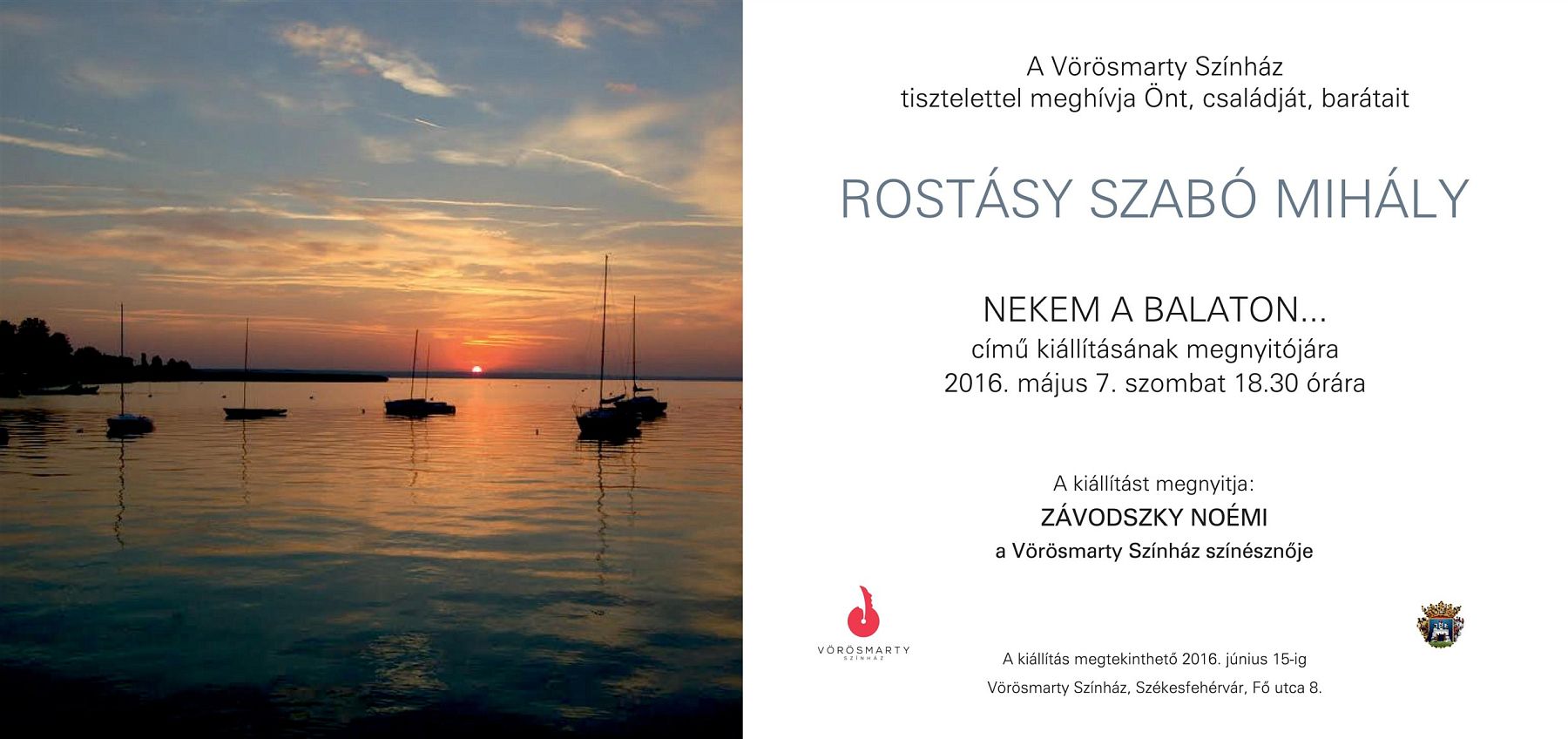 2016. május 7-én 18.30 órától szeretettel várnak minden érdeklődőt a Vörösmarty Színház Forrás Galériájába Rostásy Szabó Mihály Nekem a Balaton... című kiállításának megnyitójára. A Székesfehérváron élő Rostásy Szabó Mihály több évtizede foglalkozik hivatásszerűen a fotózással, tanárként az ifjúság vizuális nevelése a hivatása.