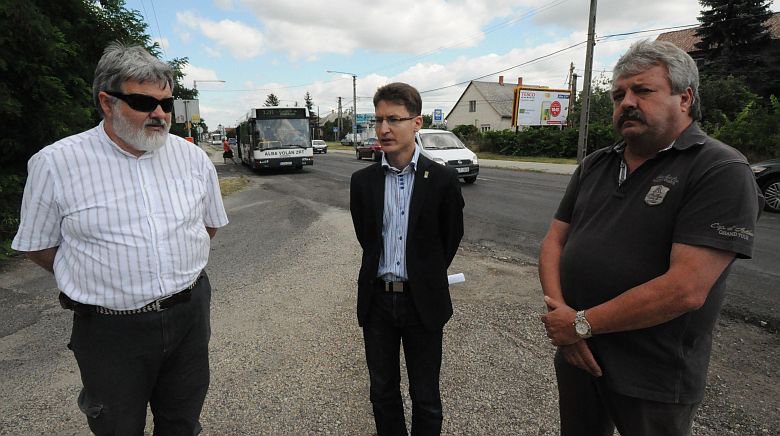 A Saára Gyula program útfelújítási beruházásairól Cser-Palkovics András polgármester, Nagy Zsolt a Polgármesteri Hivatal Közlekedési Irodájának vezetője és Böröcz László a Kulcs Kft. ügyvezetője a Sárkeresztúri úton zajló munkálatoknál tartott sajtótájékoztatót.