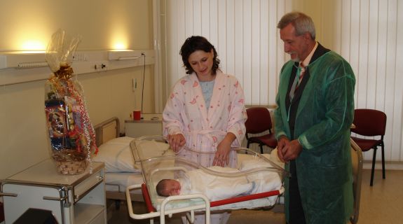 A város nevében Warvasovszky Tihamér polgármester is köszöntötte az édesanyát és kis Hanna Ágotát. Átadott egy 200 ezer forintos életbiztosítási kötvényt, ami a kislány 18. életévében jár majd le és egy ajándékkosárral is kedveskedett a város az első újszülött családjának.