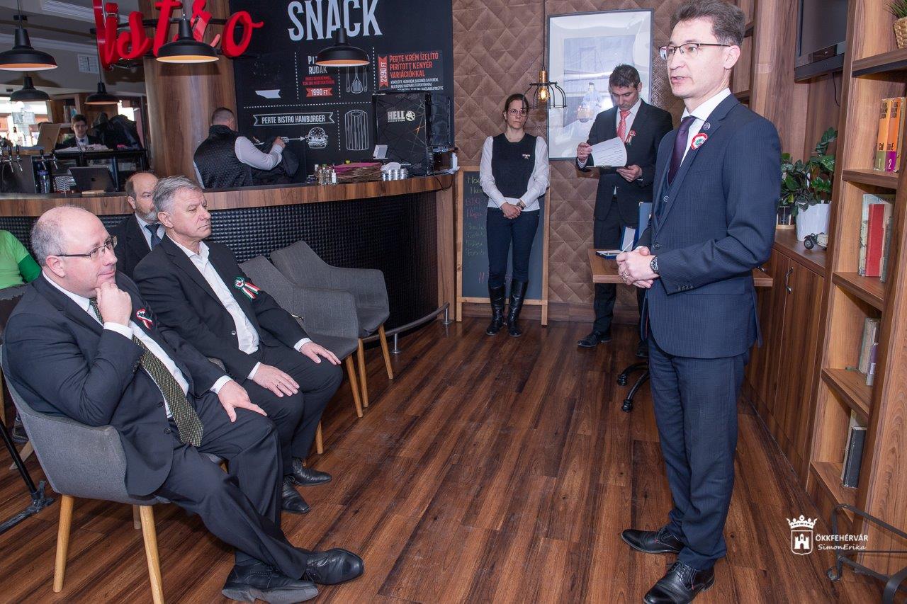 Dr. Cser-Palkovics András elsőként amiatti örömét fejezte ki, hogy ismét személyes találkozás keretében kerülhet sor a díj átadására. Mint a város polgármestere elmondta, ez egy alapvetően közösségi eseménysor, amivel nemzeti ünnepünkre készülünk itt, Székesfehérváron. Köszönetet mondott a fehérvári szerkesztőségeknek, hogy helyt álltak két esztendőn keresztül – ami számos váratlan eseményt tartogatott – a világjárvány idején. „Ezt együtt tudtuk végigvinni, és ezért szeretnék köszönetet mondani!” – emelte ki dr. Cser-Palkovics András.
