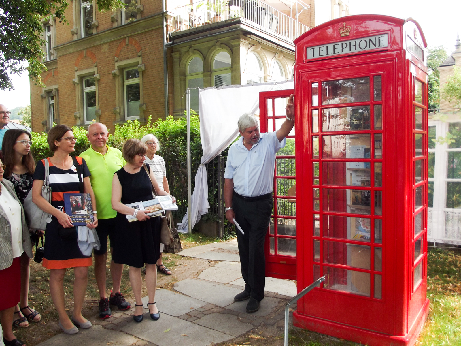 A kertben az angol Barnsley által korábban adományozott telefonfülke új funkciót kapott: a testvérvárosokat bemutató német, angol, olasz és magyar nyelvű könyvekkel töltötték meg. A gyűjteménybe most a fehérváriak is vittek magunkkal néhány könyvet: Schneider Éva, a Székesfehérvári Német Nemzetiségi Önkormányzat elnöke a magyarországi németeket bemutató kiadványokkal érkezett.