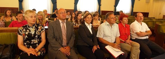 A német delegációt dr. Csapó Csilla alpolgármester fogadta, aki a város múltjáról és jelenéről is beszélt a látogatóknak. Az alpolgármester Fehérvár sportéletéről és kiemelkedő kulturális rendezvényeiról is tájékoztatta a vendégeket, akik számos kérdést tettek fel a város életével kapcsoltban, többek között arra is kíváncsiak voltak, hogy hogyan érintette Székesfehérvárt a gazdasági válság. A Vasvári Pál Gimnázium részéről Horváth József igazgató köszöntötte a vendégeket. Az igazgató reményét fejezte ki, hogy a következő napokban a német diákok megismerik majd a magyar kultúrát és sok barátot szereznek majd Magyarországon.