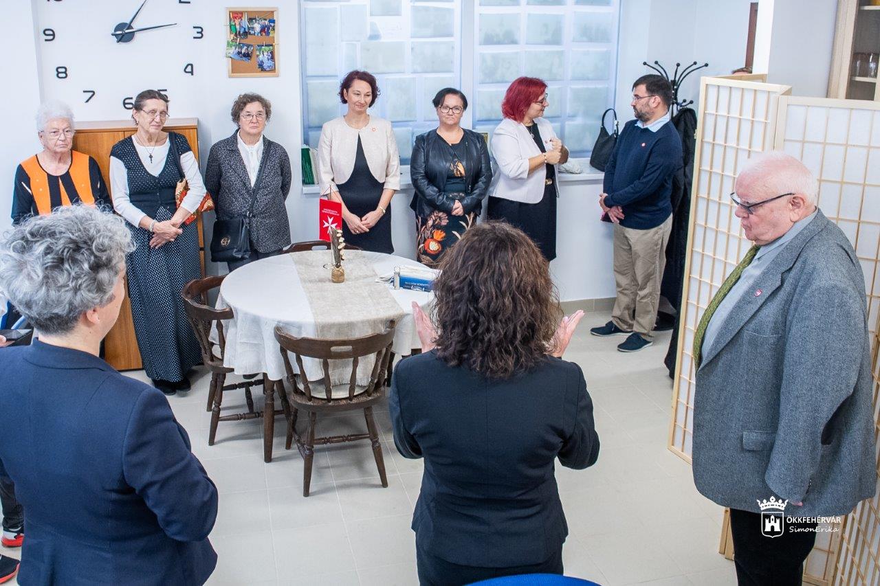 Mint mondta, azóta is megmaradt a kapcsolata ezzel a világgal, így számára külön öröm, hogy az ünnepi alkalmon részt vehet. Hozzátette, a szenteléskor a jót kérjük, a jót hívjuk arra a házra vagy éppen irodára, amelyet megáldunk. „A jelnyelvi szolgálat működtetésével a szeretetszolgálatnak egy olyan színe jelenik meg, ami kiegészíti a Magyar Máltai Szeretetszolgálat székesfehérvári központjának tevékenységét. Adunk valamit abból, amink van azoknak, akiknek szükségük van a segítségünkre, s ezzel közben mi is kapunk.” – fogalmazta meg az atya, aki ezt követően megáldotta az irodát.