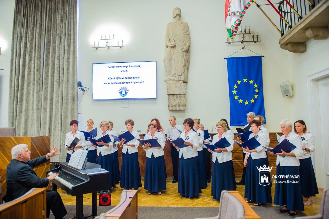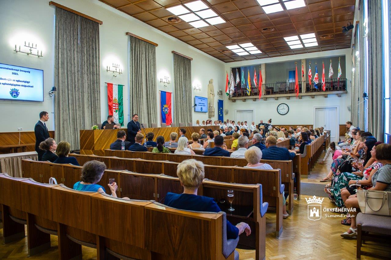 A Városháza Dísztermében folytatódott az ünnepség, ahol köszöntötték az orvosokat, a védőnőket, az ápolókat, az egészségügyben dolgozókat, és kifejezték Székesfehérvár városának köszönetét a betegellátásban nap mint nap tanúsított elhivatottságukért.