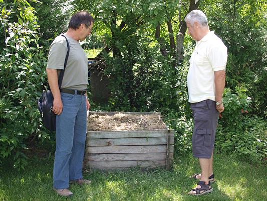 „Mi nem figyelünk erre oda különösebben, hiszen a tavaszi időszaktól minden héten nyírjuk a füvet és dolgozunk a kertben. Így elmondható, hogy egy vegyes keverék kerül már magától is a komposztba, amit a keretbe rakva kicsit össze is keverünk. De arra figyelünk, hogy mindig kerüljön az anyagok közé egy kis szálas dolog, ami levegőssé teszi a komposztunkat.” – Kapuvári Tibor