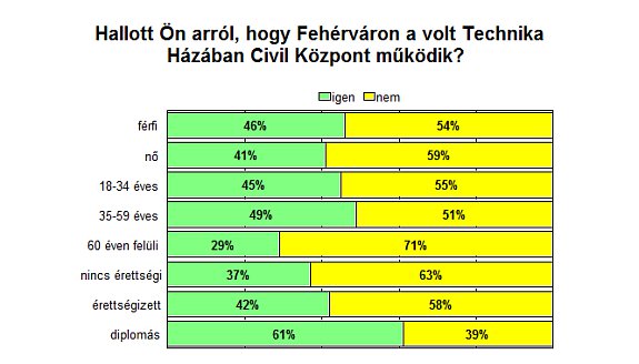 2012. december 14-17. között készített egy felmérést Székesfehérvár lakói körében az Echo Innovációs Műhely. A kutatás arra kereste a választ, hallottak-e a megyeszékhelyen élők a Fehérvári Civil Központról és jártak-e már ott. Ruff Tamás adatfelvételi vezető ismertette a 300 fős, reprezentatív telefonos kutatást, amelyből kiderült, hogy a fehérvári felnőtt lakosság 43 százaléka hallott arról, hogy Székesfehérváron a volt Technika Házában Civil Központ működik.Akik hallottak a Civil Központ működéséről, 24 százalékuk már járt is az épületben. A teljes lakosság arányában nézve ez azt jelenti, hogy minden tizedik fehérvári lakos megfordult már legalább egyszer ebben az új intézményben. Az eredmények azt mutatják, hogy a férfiak, a 35-59 év közöttiek és a diplomások látogatják nagyobb arányban a Fehérvári Civil Központot.