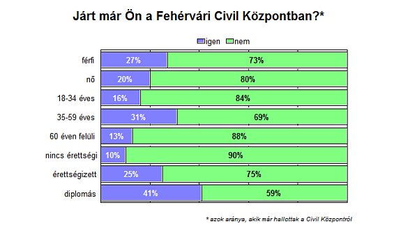 Mindezek tükrében megállapítható, hogy sikeresen működik a városban a Fehérvári Civil Központ. A szervezetek használják az épület nyújtotta adottságokat, igénylik a szakmai szolgáltatásokat, a megyeszékhelyen élők nagy része pedig hallott arról, hogy működik a Központ, és minden tizedik városlakó járt is már az épületben.