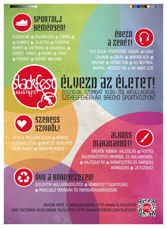 Az október 6-án megrendezésre kerülő SlackFest & Visual Night olyan hobbikat, sportokat, életmódot szeretnénk bemutatni a rendezvényre látogatóknak, amik érdekes, látványos és élvezetes módon közvetítik azokat a régi-új értékeket, mint az önfegyelem, a többi ember tisztetele, a mozgás, az egészséges és környezettudatos életmódra nevelés, valamint a helyi közösségek fontossága. Az ingyenes rendezvény helyszíne a Bregyó Sportközpont lesz.