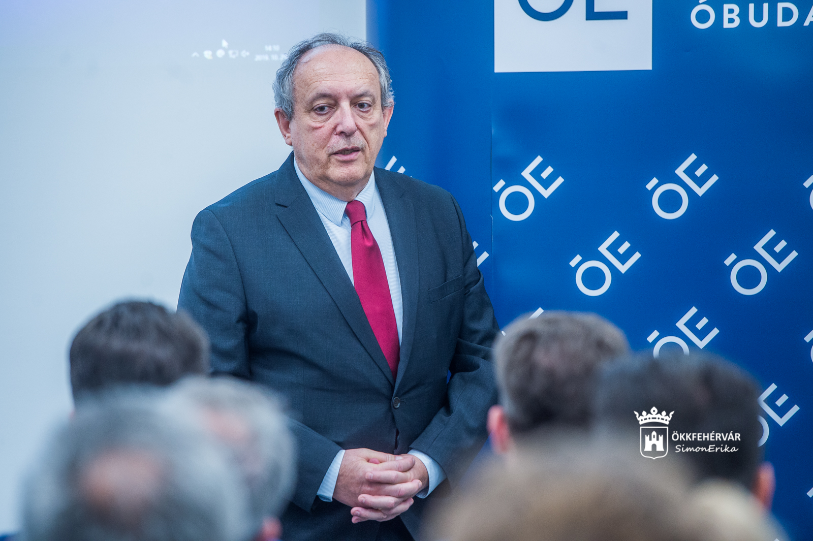Dr. habil Györök György, az OE Alba Regia Műszaki Karának dékánja a műszaki felsőoktatás helyzetéről szólt, kiemelte, hogy a területen használt eszközök erkölcsi amortizációja sokkal gyorsabb, mint a fizikai. „Az Ipar 4.0 számozást elhagyva már csak az Ipar X.0 kifejezést használják világszerte, ami jól mutatja a fejlődés szinte már követhetetlen tempóját. Mai rendezvényünkkel a cél, hogy ablakot nyissunk a világra: egyrészt vizuálisan bemutathatjuk, hogy mi, mint felsőoktatási intézmény mivel foglalkozunk, másrészt ki tudunk tekinteni arra, hogy az ipar milyen elvárásokat támaszt felénk és diákjaink felé.” – emelte ki a kar dékánja.