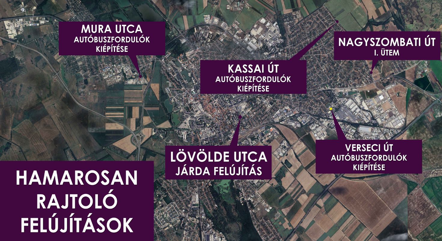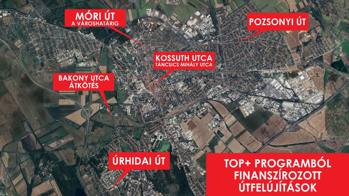 Összességében elmondható, hogy a Versenyképes Járások Program keretében visszaérkező összegből, valamint – a helyi gazdaság növekedésének és a takarékos gazdálkodásnak köszönhetően – a város saját forrásaiból tervezett útfelújítások összesen kb. 4, 8 milliárd forint összértékben 137 ezer m2 megújuló vagy új útfelületet jelentenek! Ezen felül komoly összeg – kb. 5 milliárd forint – jut a városi utakra a TOP Plusz fejlesztési „csomagból” is: ebből a forrásból olyan nagyságrendű munkák indulhatnak meg, mint például a Bakony utca összekötése a 8-as számú főút elkerülő szakaszával, a Pozsonyi út, az Úrhidai út és a Móri út egy szakaszának felújítása, valamint a Belvárosban is lesznek megújuló utcák.