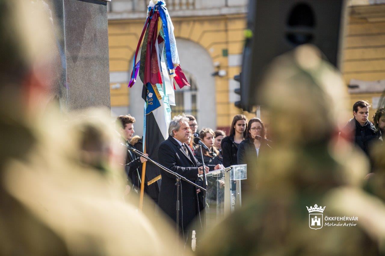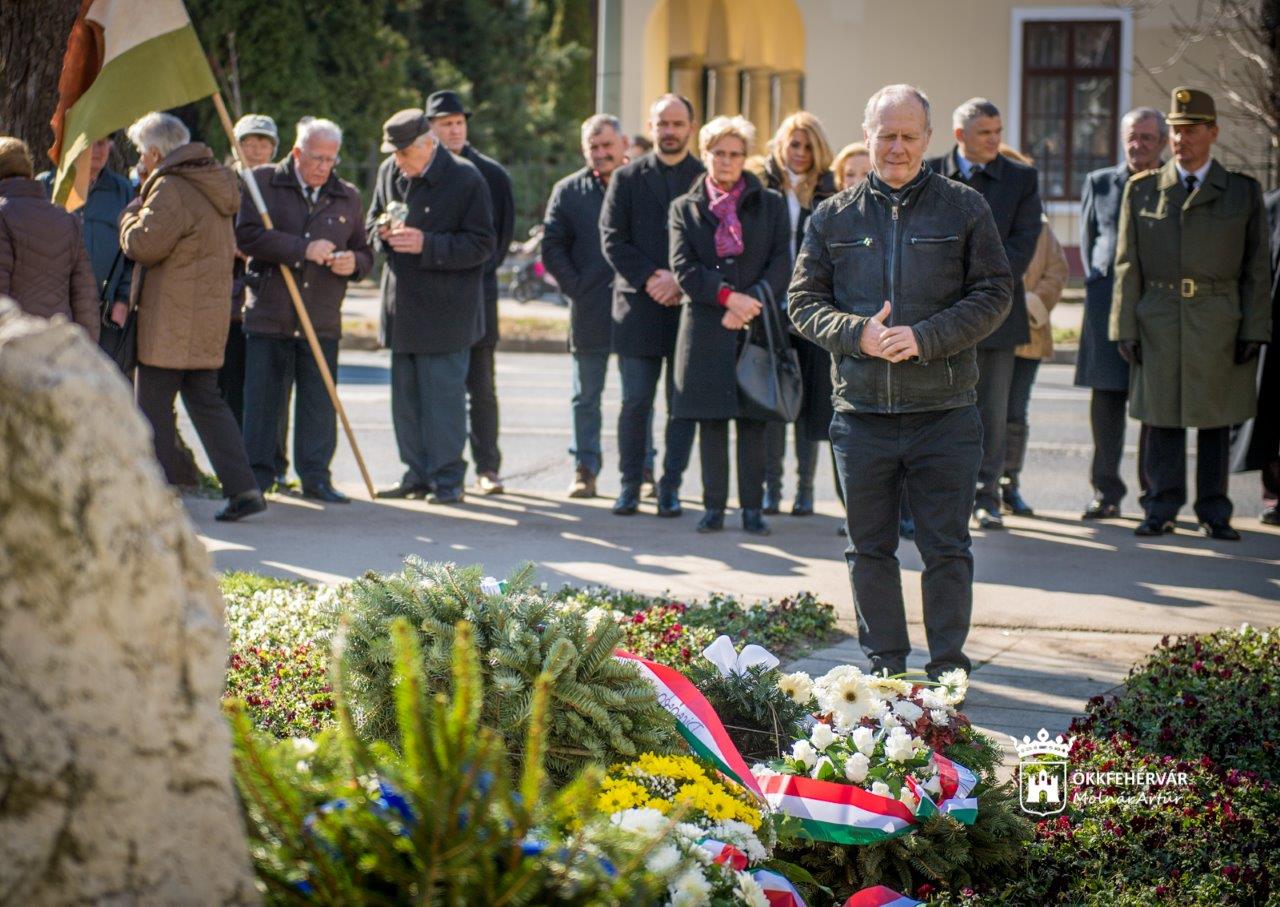 A város Önkormányzata és a Fejér Megyei Önkormányzat hagyományosan közösen szervezett emlékünnepséget az Ötvenhatosok terén, ahol részt vettek a közhivatalok, a honvédség, a fegyveres és rendvédelmi szervek, a fehérvári egyetemek, a tankerület, az egyházak, a pártok és a hagyományőrző civil szervezetek vezetői, képviselői.