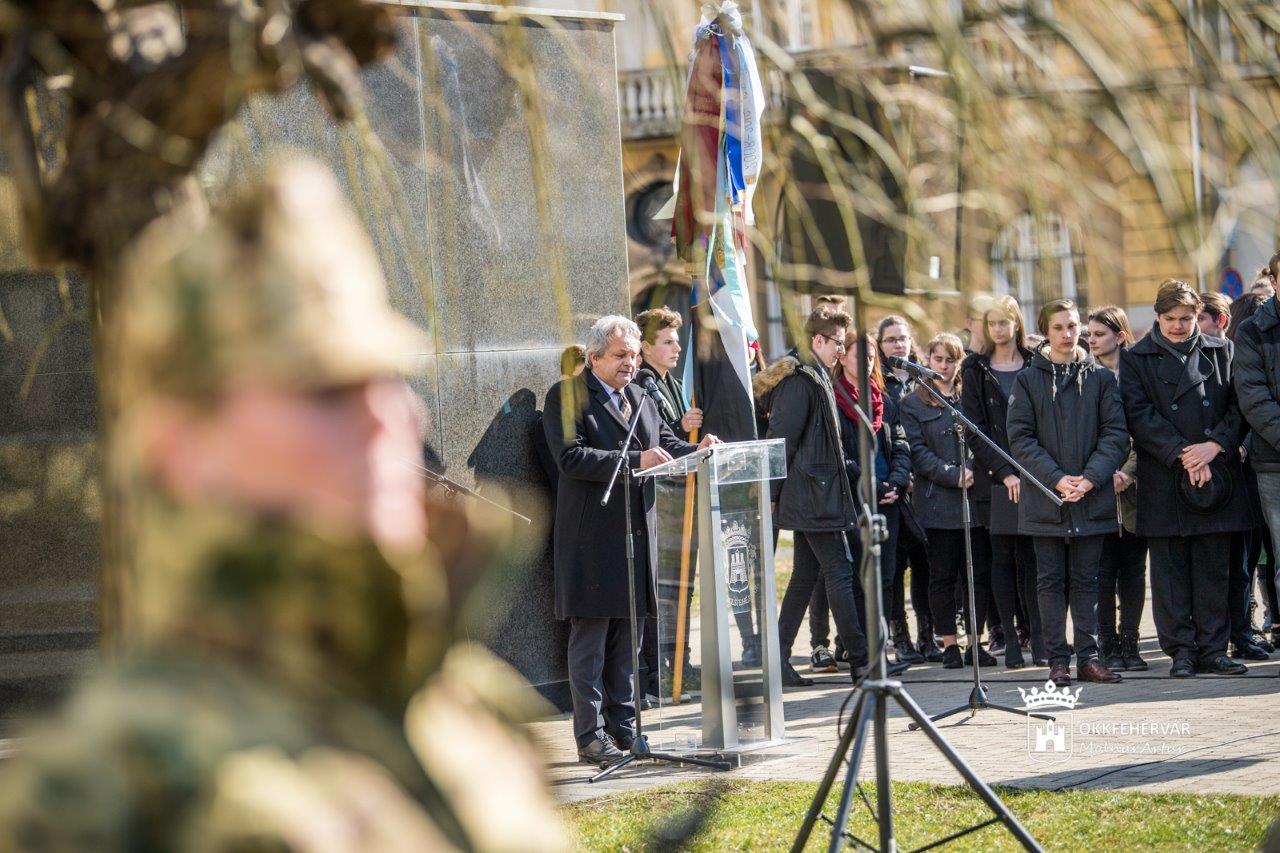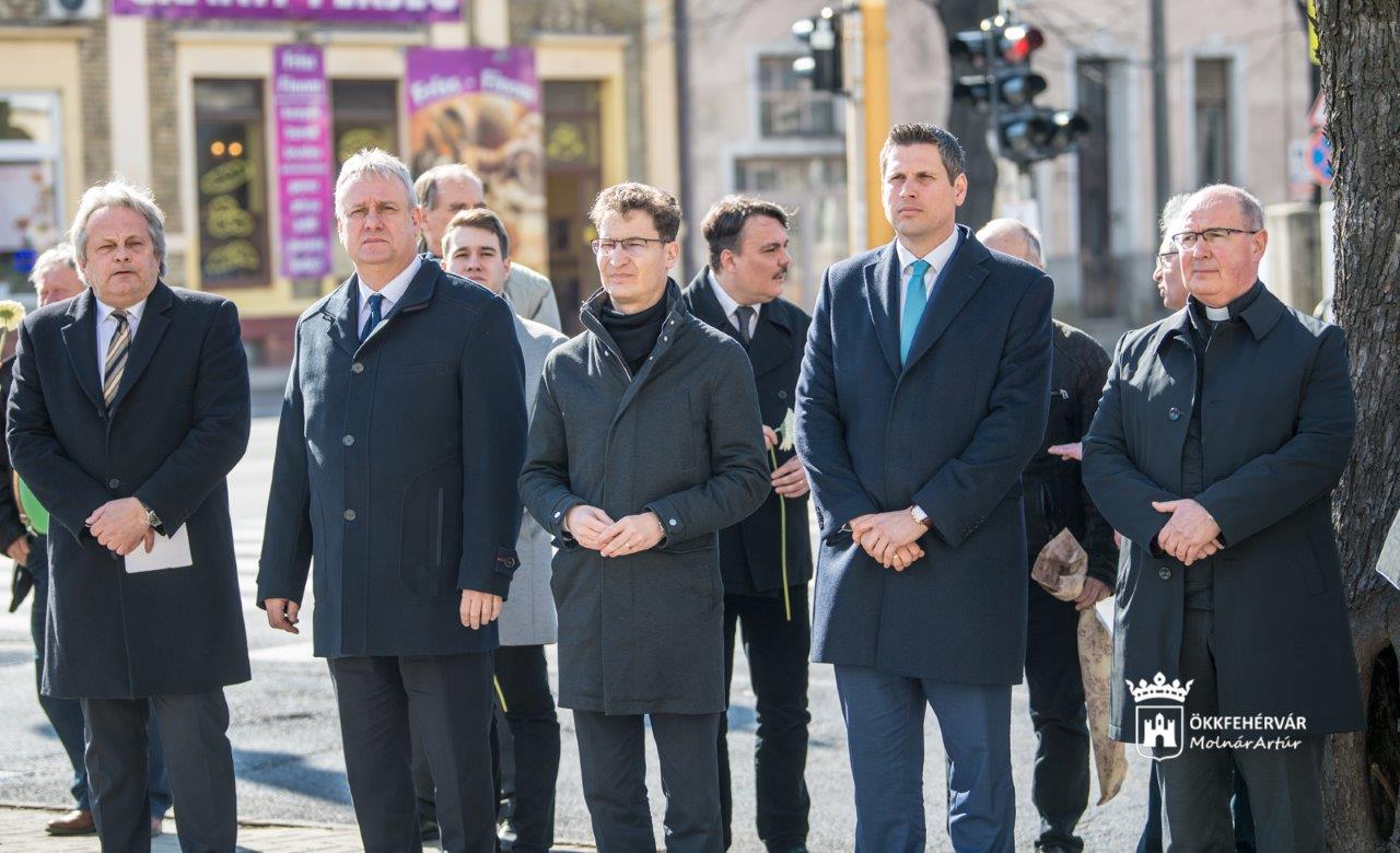 „Emlékezünk a helyrehozhatatlanra. Arra, hogy végigtarolt a huszadik századon egy forradalminak kikiáltott eszme. Ez az eszme Marx és Engels szellemében a nép felemelkedésének ígéretével elkábított tömegeket a lenini-sztálini diktatúra igájába hajtotta. Emlékezünk a kivégzett, legyilkolt, börtönökbe vetett, elhurcolt, munkatáborokba zárt, kitelepített, otthonuktól, családjuktól, értékeiktől megfosztott áldozatokra.” - hangsúlyozta beszédében Vargha Tamás államtitkár, Székesfehérvár országgyűlési képviselője.